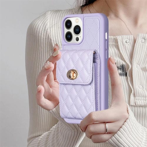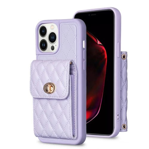 Funda de Cuero para iPhone 13 Pro Max Vertical Metal Hebilla Monedero Rombico (Púrpura)