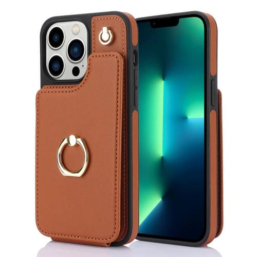 Funda para Teléfono iPhone 13 Pro Max Ym005 Skin Feel Card Bag con Cordón Largo (Marrón)