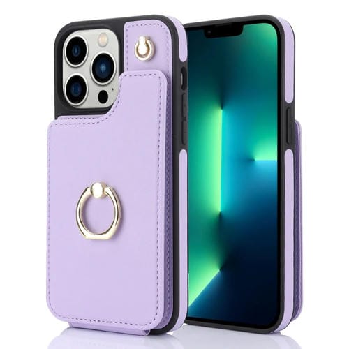 Funda para teléfono Ym005 Skin Feel Card Bag para iPhone 13 Pro Max con cordón largo (Púrpura Claro)