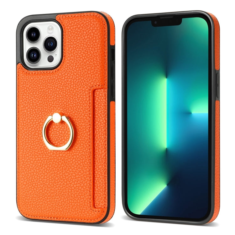 Funda Trasera de Cuero Ring Card para iPhone 13 Pro (Naranja)