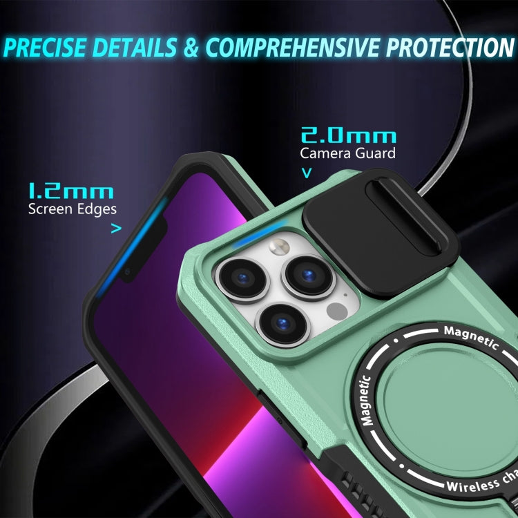 Funda para teléfono iPhone 13 Pro Sliding Camshield Magsafe Holder TPU Hybrid (Azul Claro)
