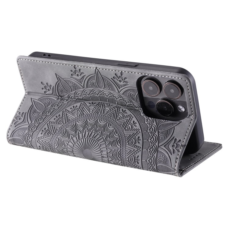 Funda de Cuero Magnética Totem para iPhone 13 Pro En Relieve (Gris)