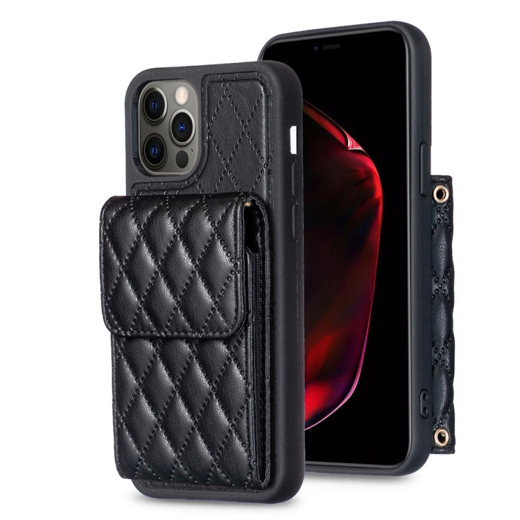 Funda para iPhone 13 Pro Vertical Wallet Rhombic Leather Phone Case (Negro)