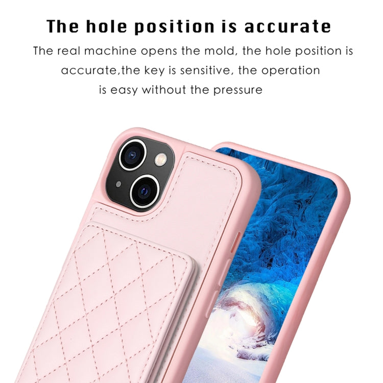 Funda para iPhone 14/13 Bf25 Square Plaid Card Bag Holder Phone Case (Rosa)