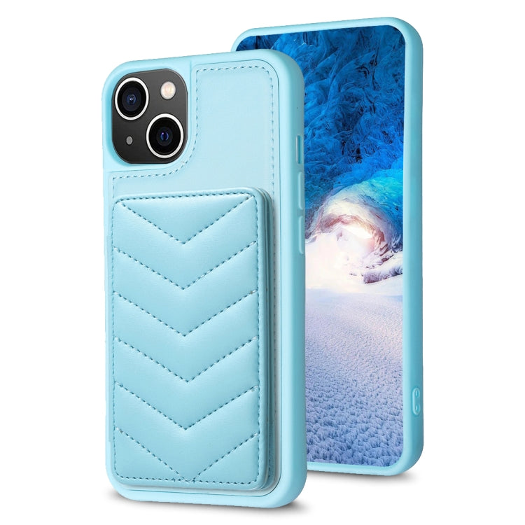 Funda para iPhone 14/13 Bf26 Wave Pattern Card Bag Holder Phone Case (Azul)