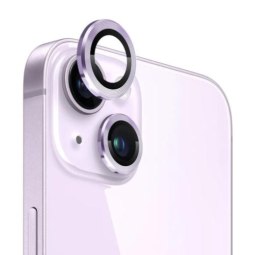 Protector de Lente de Cámara Northjo iPhone 14 y 14 Plus Vidrio Templado Anillo de Metal (Púrpura)
