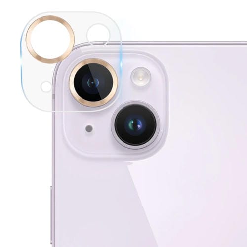 Película de Cámara Trasera para iPhone 14/14 Plus Vidrio Templado con Textura de Cd (Oro)