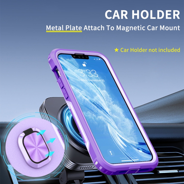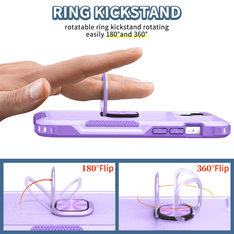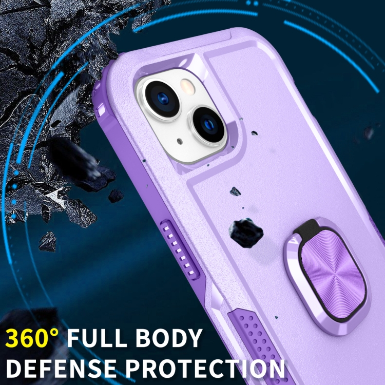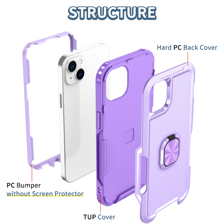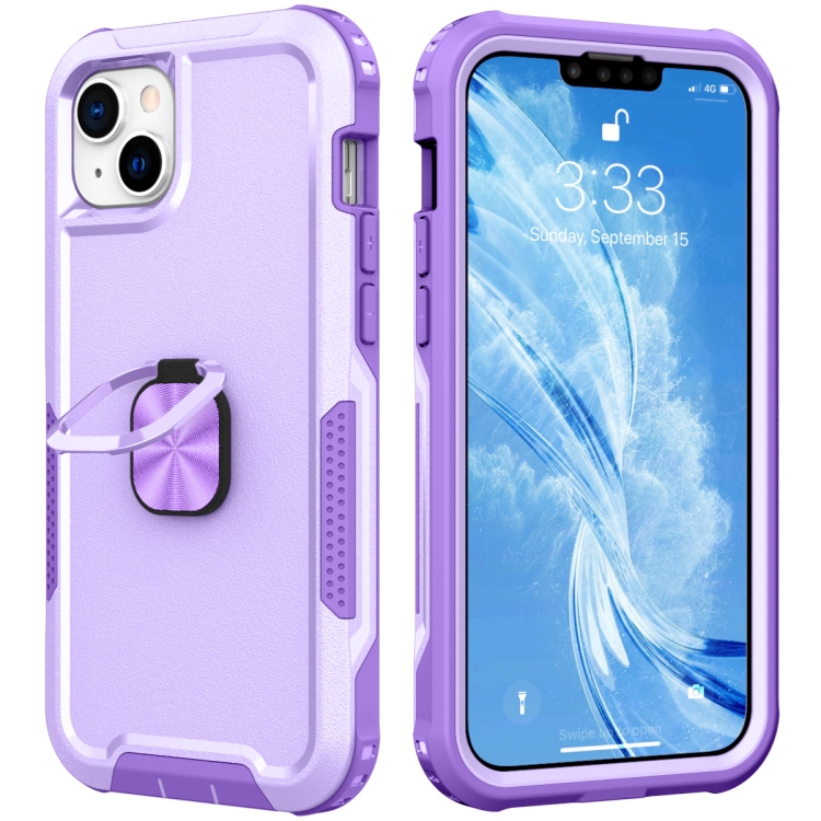 Funda para Teléfono iPhone 14 3 en 1 con Soporte de Anillo (Púrpura Claro)