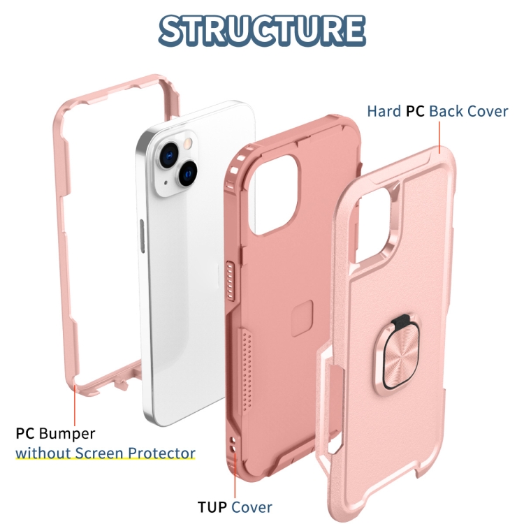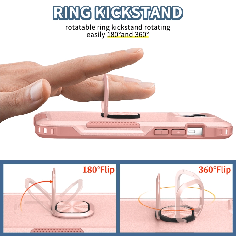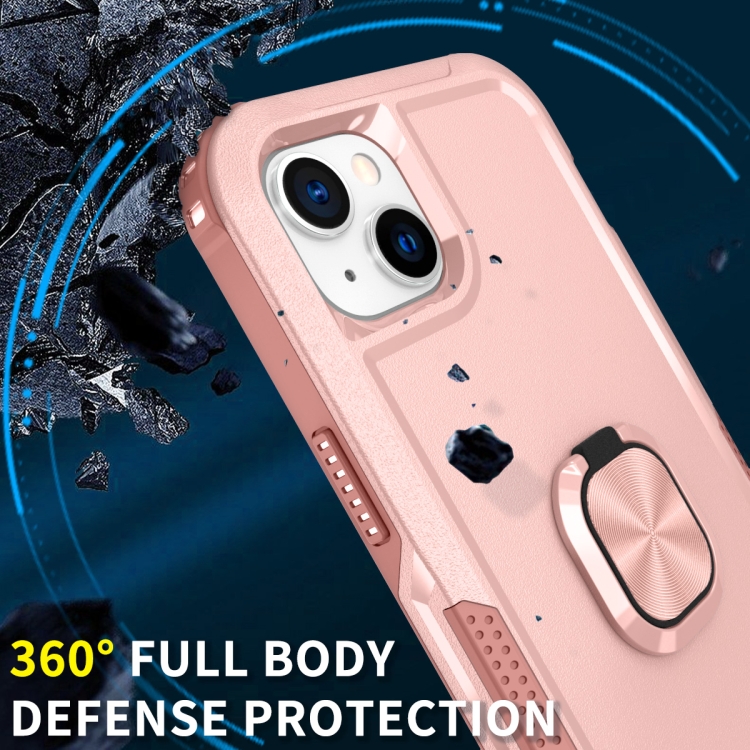 Funda para Teléfono iPhone 14 3 en 1 con Soporte de Anillo (Rosa)