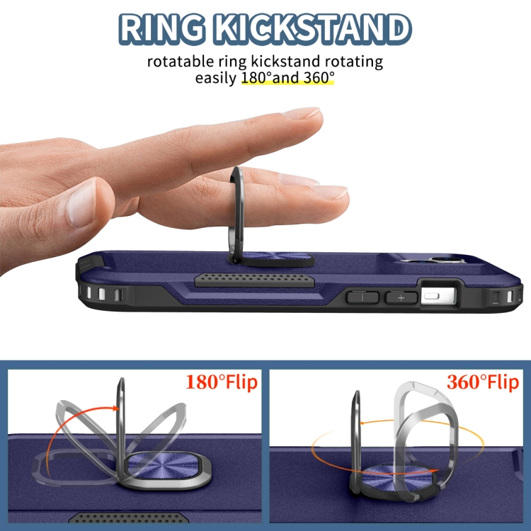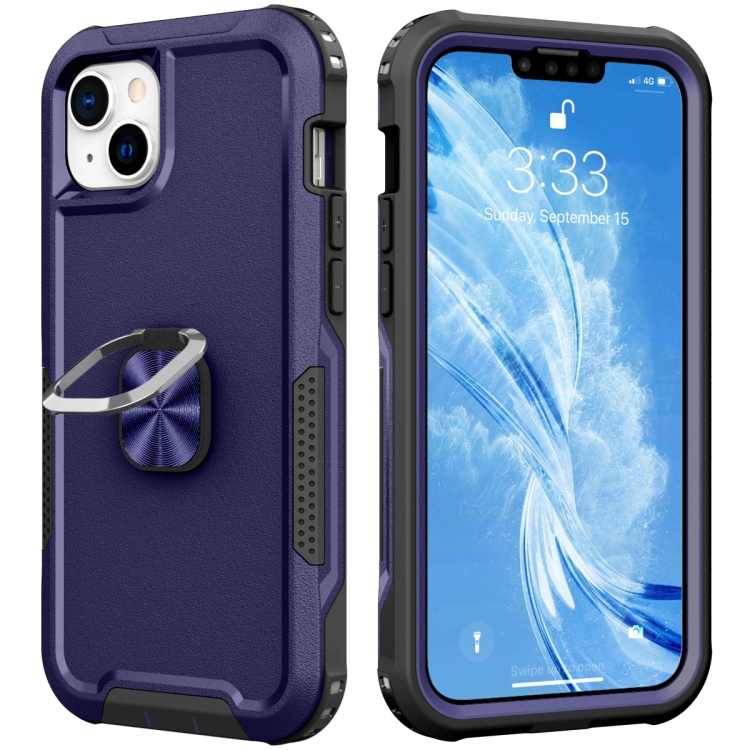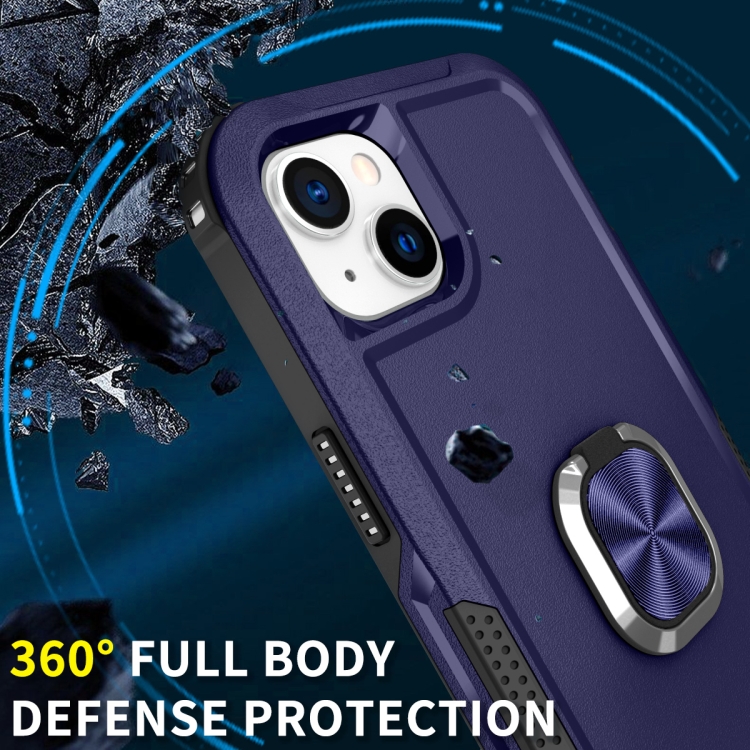 Funda para iPhone 14 3 en 1 Ring Holder Phone Case (Azul Marino)