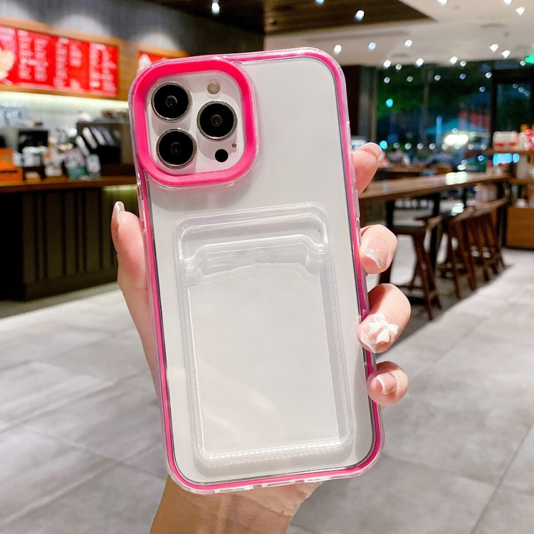 Funda para Teléfono iPhone 14 360 Clear PC Hybrid TPU con Ranura para Tarjeta (Rojo Rosa)