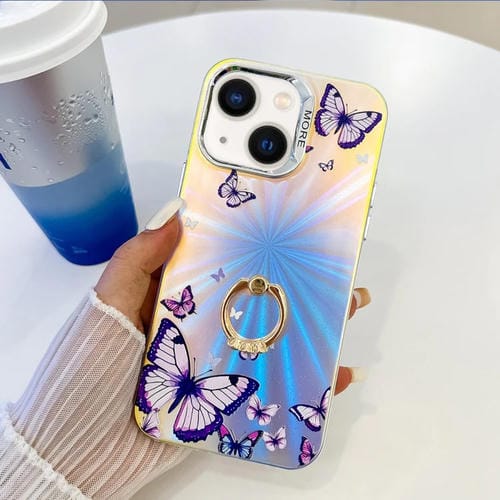 Funda para iPhone 14 con Soporte de Anillo Mariposa Láser de Galvanoplastia