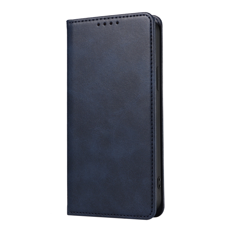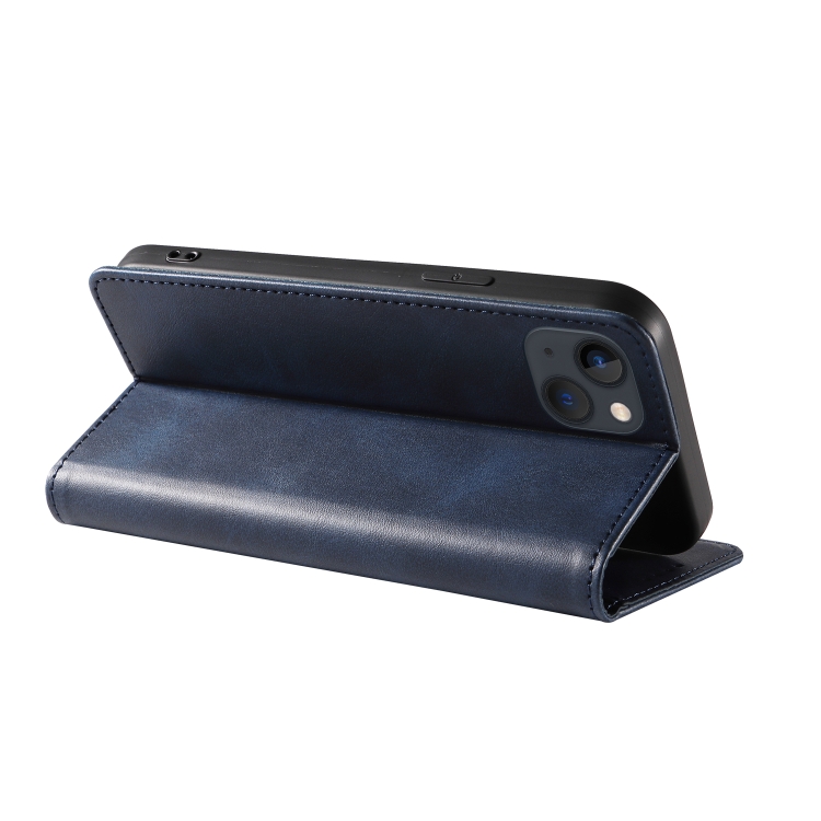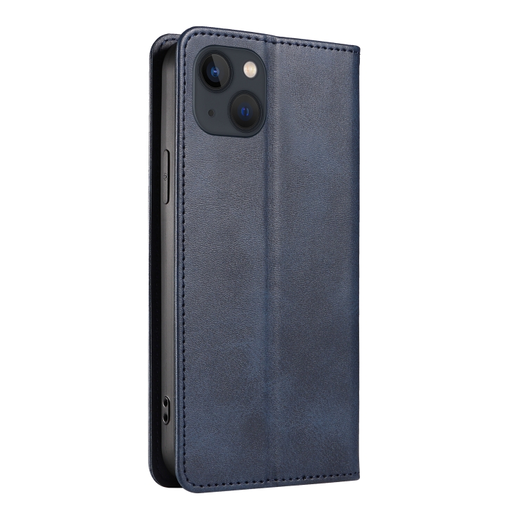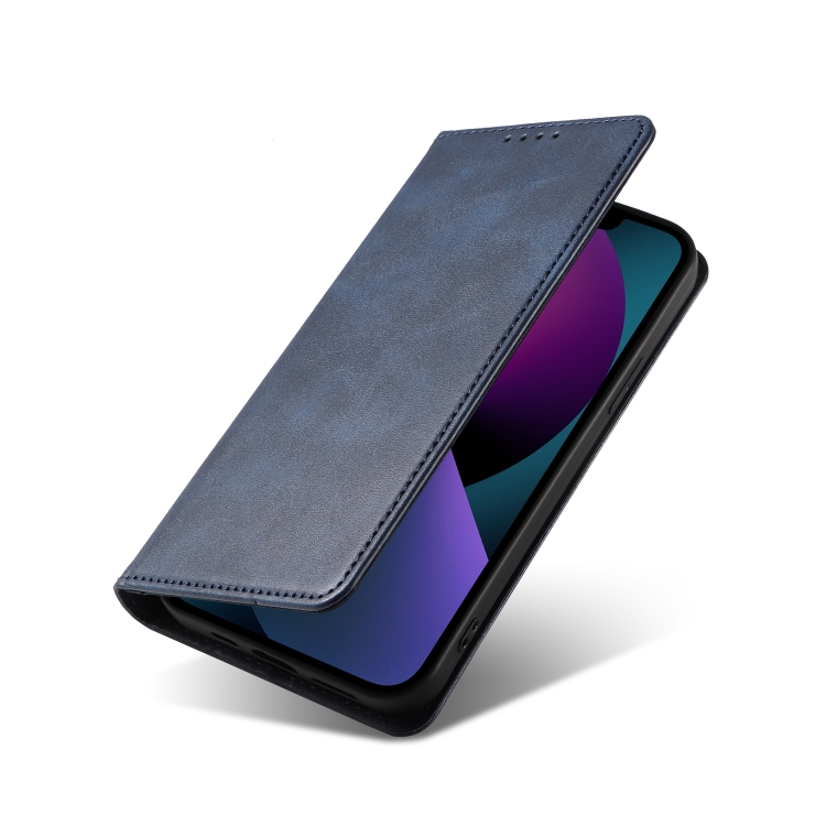Funda Flip de Cuero Magnética para iPhone 14 Calf Texture (Azul)