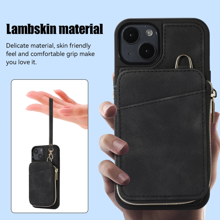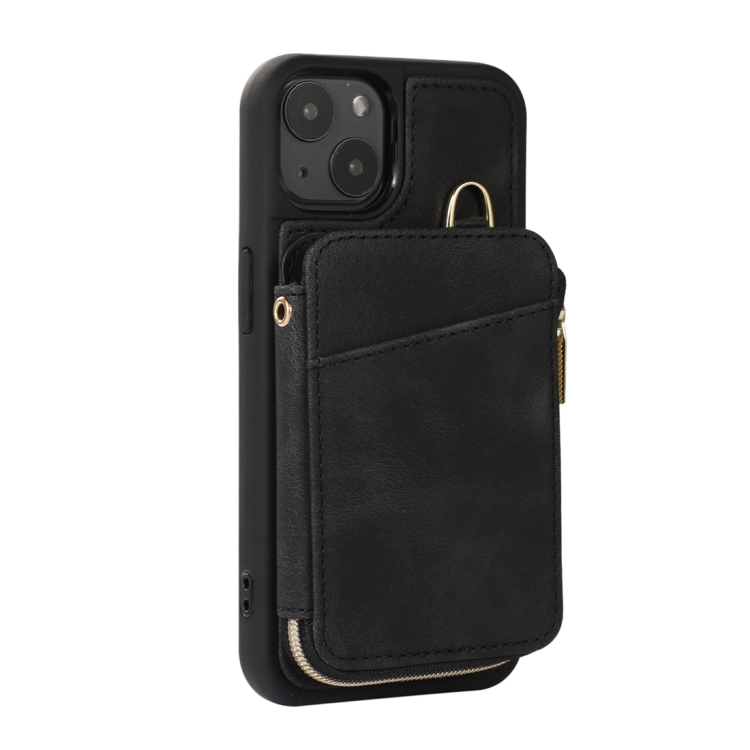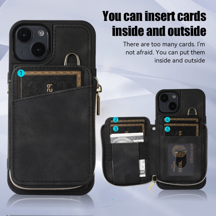 Funda para iPhone 14 Cremallera Bolsa de Tarjeta Contraportada Caja del Teléfono (Negro)