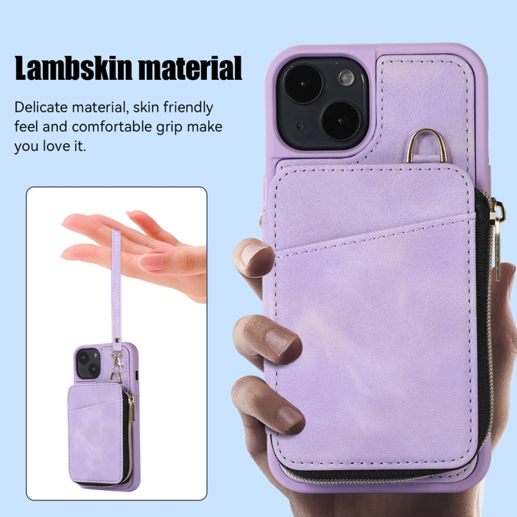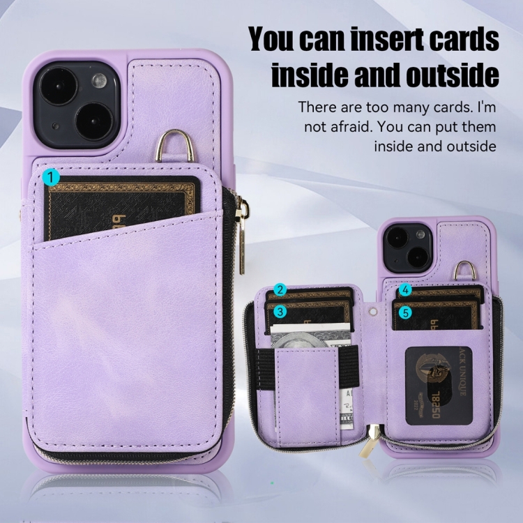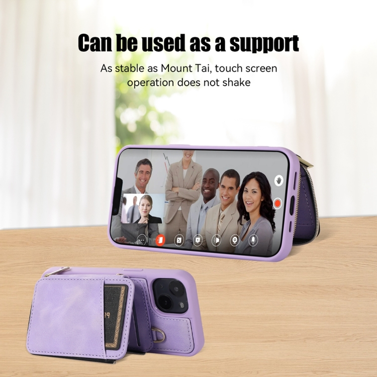 Bolsa de Tarjeta con Cremallera para iPhone 14 Contraportada Caja del Teléfono (Púrpura)