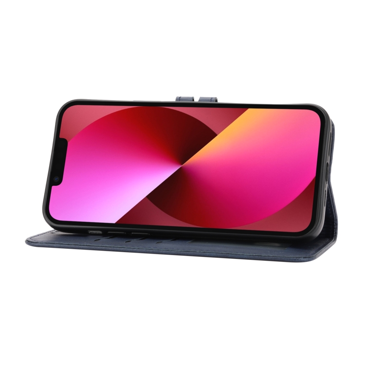 Funda Flip Leather para iPhone 14 Happy Cat Pattern en Relieve (Azul)