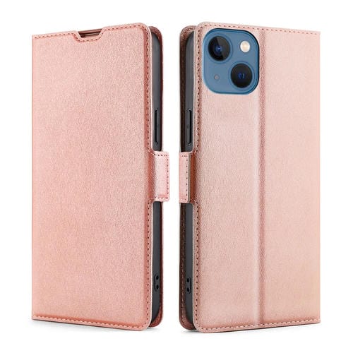 Estuche de teléfono iPhone 14 Cuero Hebilla lateral Voltaje Ultrafino (Oro Rosa)