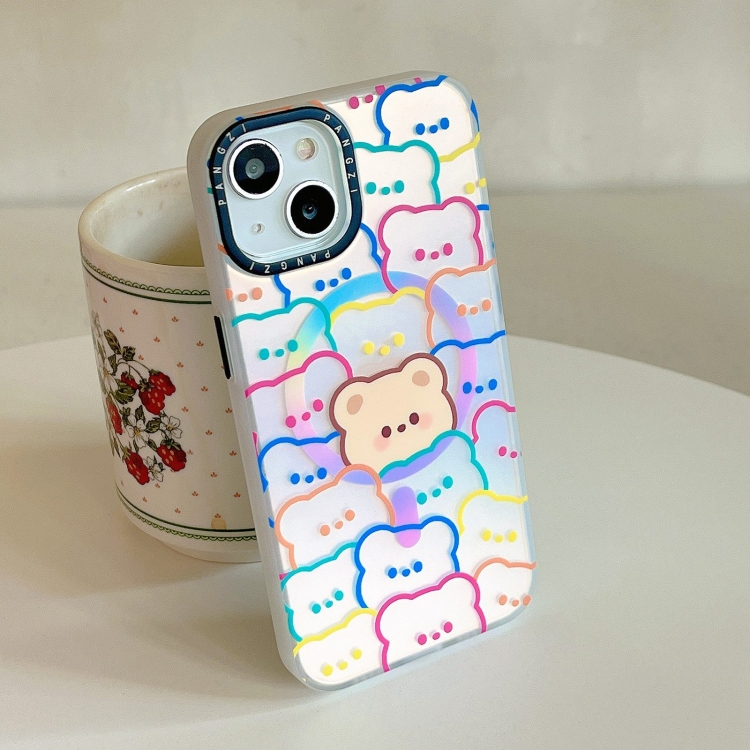 Estuche para Teléfono iPhone 14 IMD Magsafe Esmerilado Doble Capa (Osos Apilables)