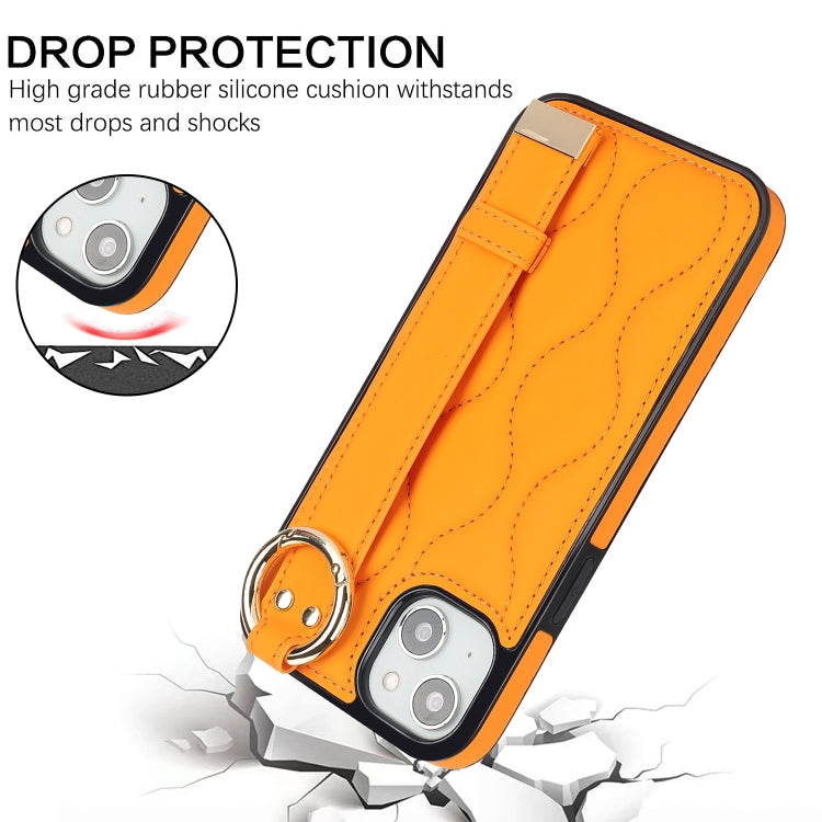 Funda para teléfono iPhone 14 Antideslizante con Anillo Cobertura Completa PU con Muñequera (Naranja)