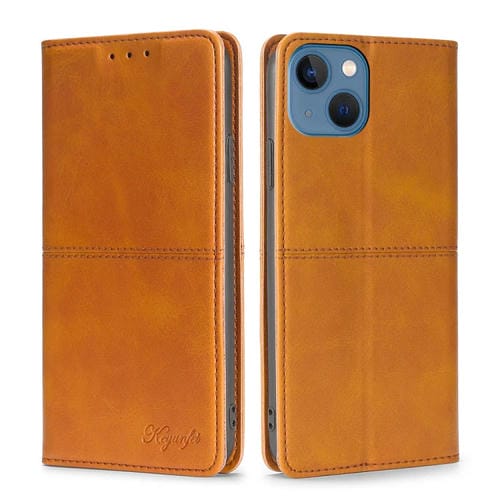 Funda de Teléfono iPhone 14 Cuero Magnético Textura de Vaca (Marrón Claro)