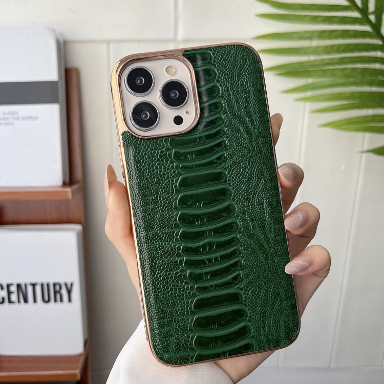 Funda de teléfono Pinshang iPhone 14 Galvanoplastia Nano Cuero Genuino (Verde)