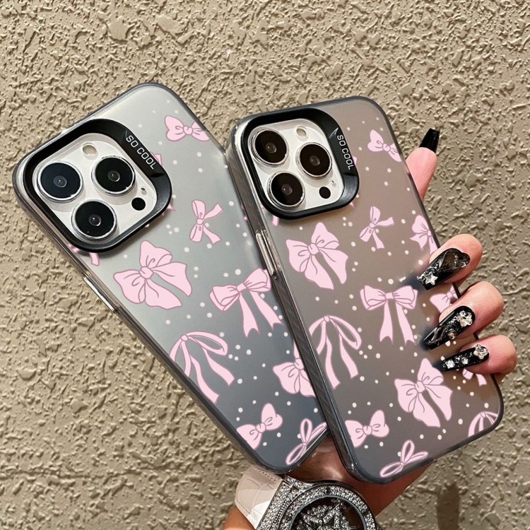 For iPhone 14 Hybrid TPU PC Case with Silver Painting (Black Bow)