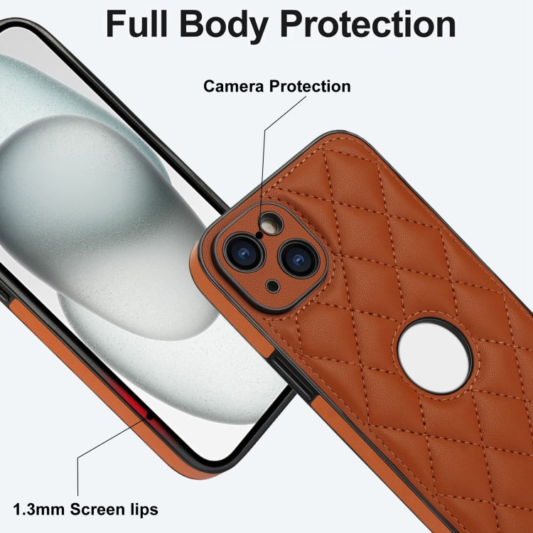 Funda para teléfono iPhone 14 con contraportada de cuero rómbico (Marrón)