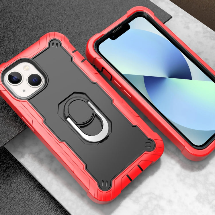 Funda para Teléfono iPhone 14 con Soporte de Anillo Dos Colores (Rojo + Negro)