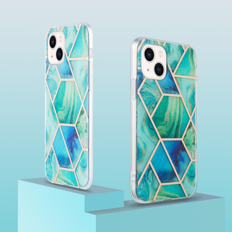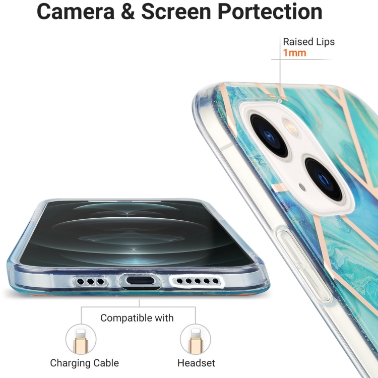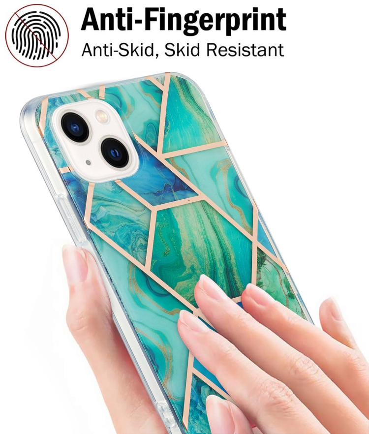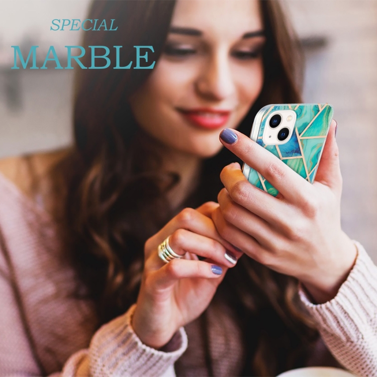 Funda para iPhone 14 Galvanoplastia Empalme Mármol Patrón de Flores Doble Cara Imd TPU a Prueba de Golpes (Verde)