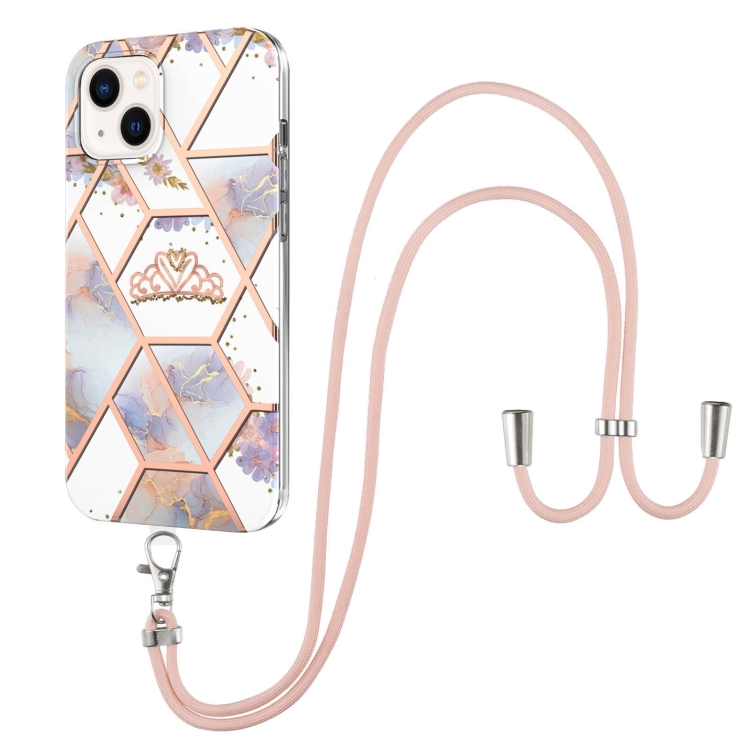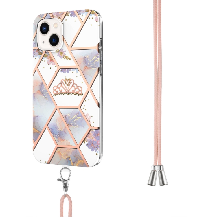 Estuche TPU para iPhone 14 Galvanoplastia Empalme Mármol Patrón de Flores a Prueba de Golpes con Cordón (Corona Imperial)