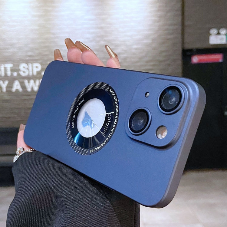 Caja magnética para iPhone 14 Galvanoplastia Inyección de Aceite Magsafe para PC (Azul Oscuro)