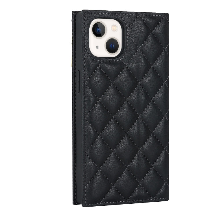 Funda de Cuero con Cremallera para iPhone 14 Grid Texture con Lanyard (Negro)