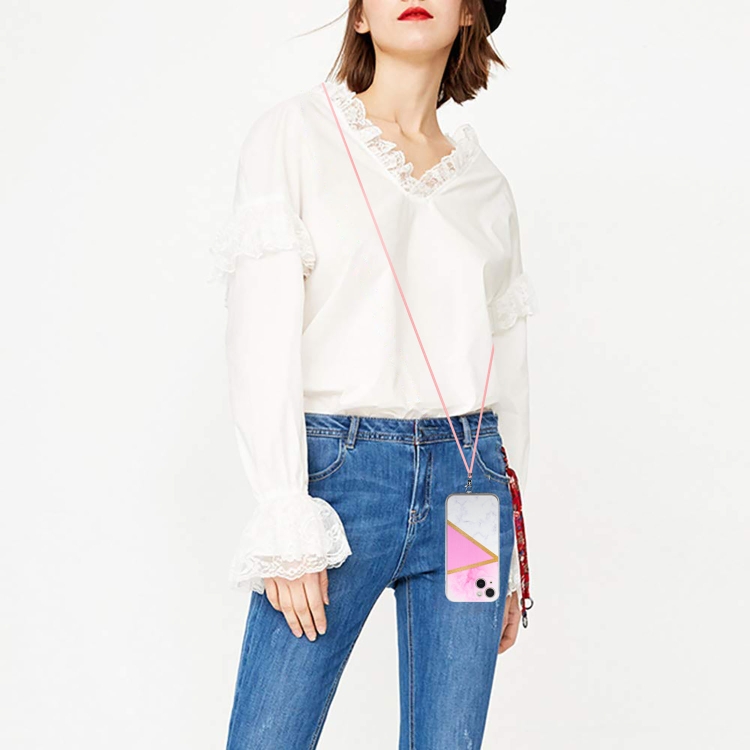 Funda para iPhone 14 Lanyard Stitching Marble TPU (Rosa)