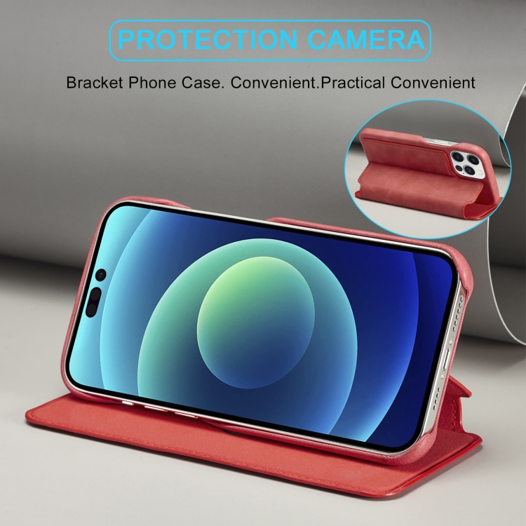 Funda de Cuero para Teléfono iPhone 14 Lc.Imeeke Hon Ancient Series Flip (Rojo)