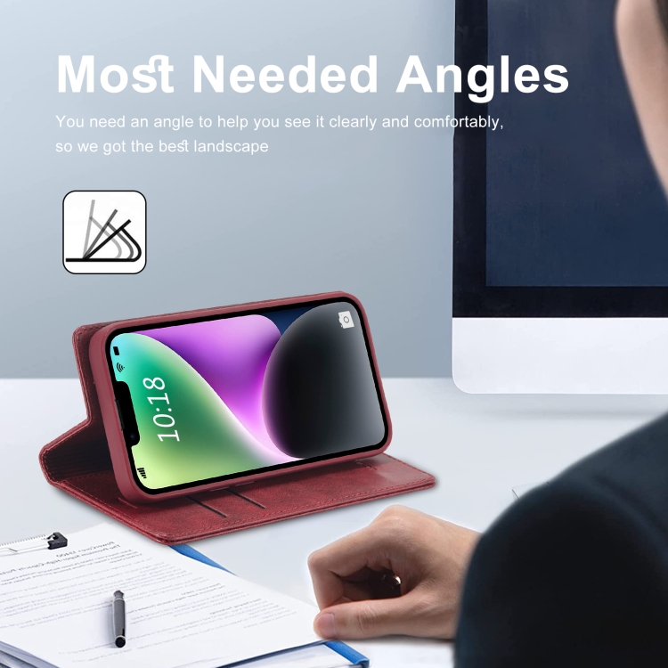 Funda de Cuero Antirrobo para iPhone 14 Lc.Imeeke RFID (Rojo)
