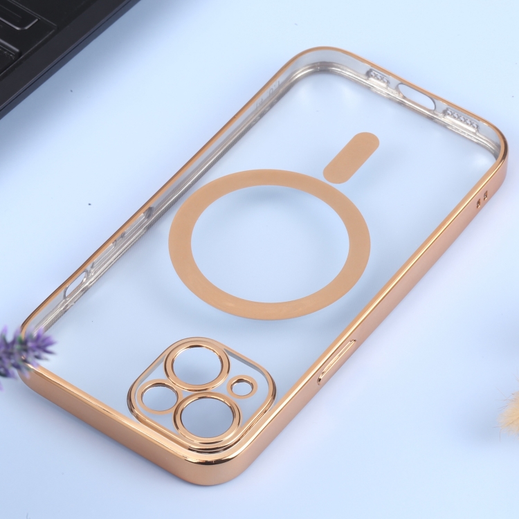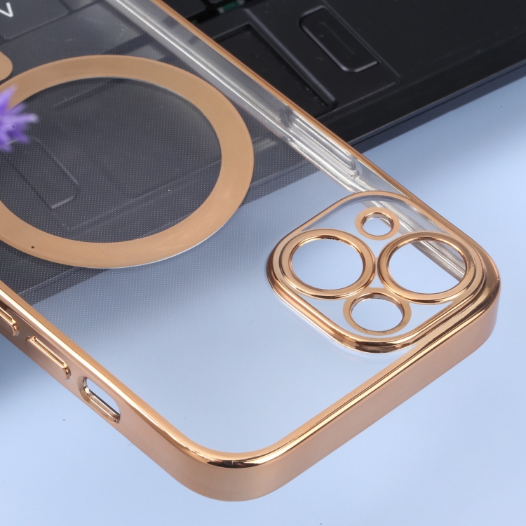 Funda para iPhone 14 Magsafe Galvanoplastia Straight TPU Phone Case (Oro)