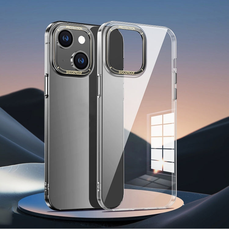 Funda para iPhone 14 Metal Lens Ring Clear PC Phone Case (Negro)
