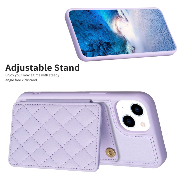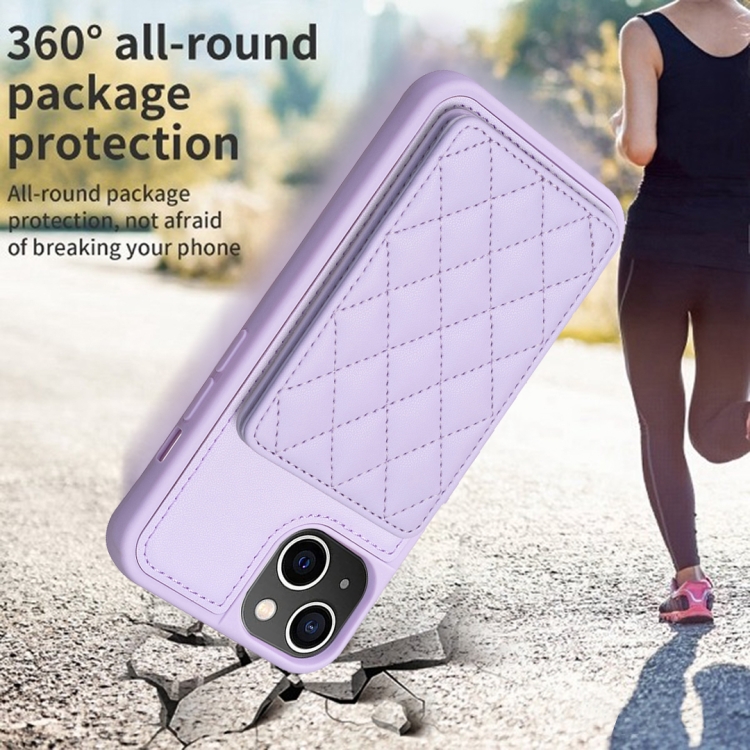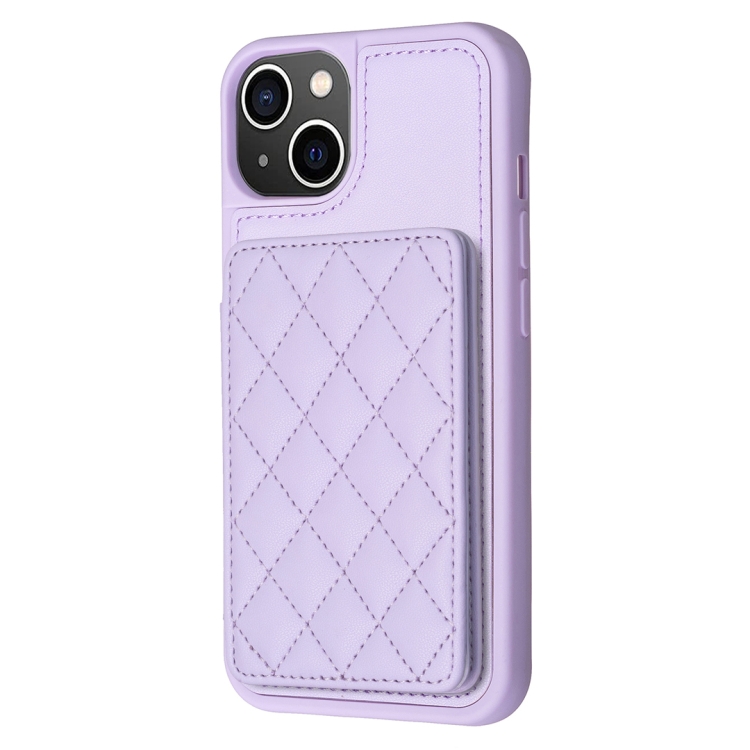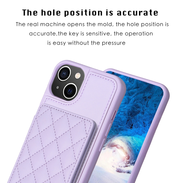 Funda para iPhone 14 Plus Bf25 Square Plaid Card Bag Holder Phone Case (Púrpura)