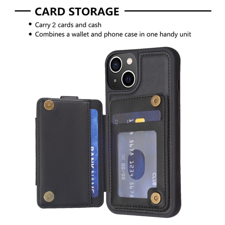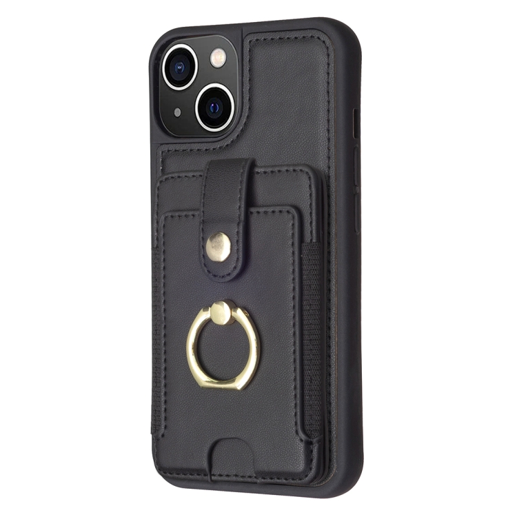 Funda para Teléfono Bf27 para iPhone 14 Plus con Soporte para Tarjeta y Anillo de Metal (Negro)