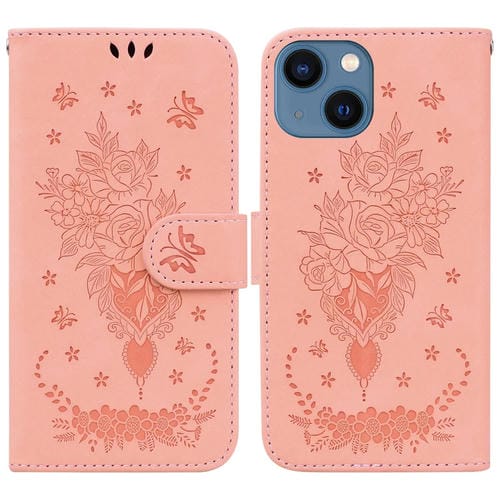 Funda de Cuero iPhone 14 Plus Butterfly Rose En Relieve (Rosa)