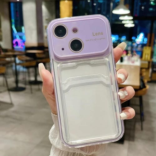Estuche híbrido para iPhone 14 Plus TPU con ventana grande y ranura para tarjeta (Púrpura Claro)