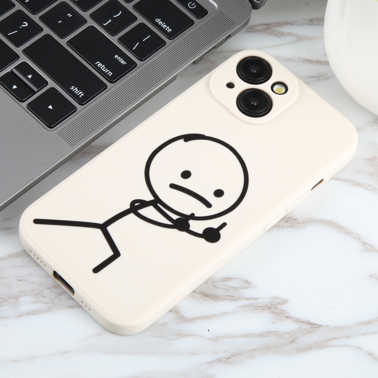 Estuche para Teléfono iPhone 14 Plus Silicona Líquida Patrón Stickman (Blanco)