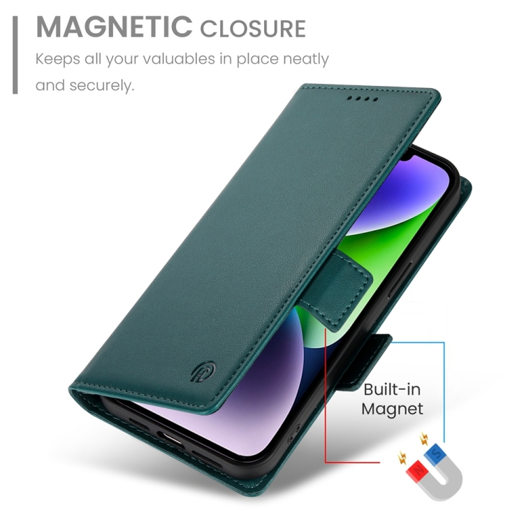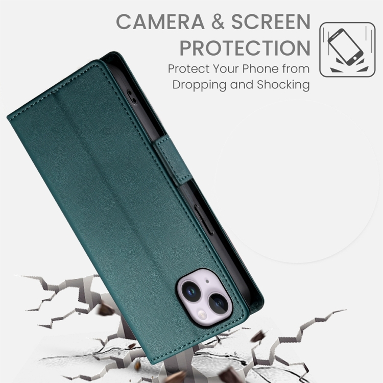 Funda para Teléfono iPhone 14 Plus Cuero Esmerilado Magnético con Hebilla Lateral (Verde Oscuro)