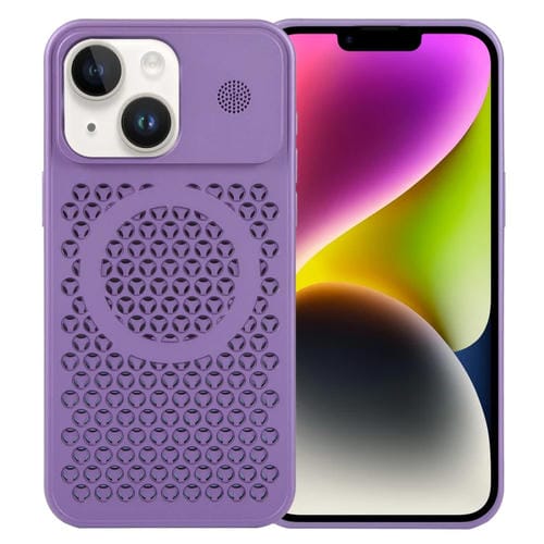 For iPhone 14 Plus MagSafe Phone Case with Pure Color Honeycomb Aromatherapy (Purple)