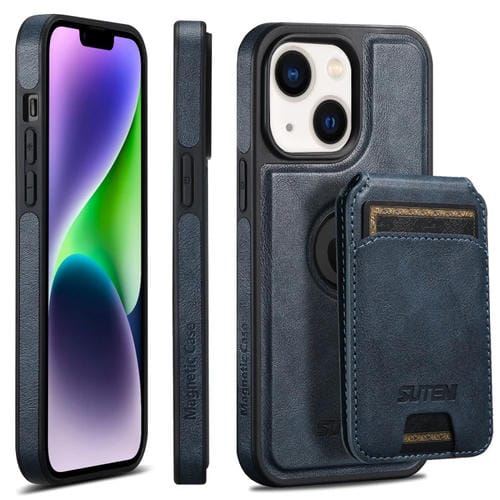 Funda para Teléfono Suteni M1 Oil Wax Magsafe para iPhone 14 Plus con Bolsa para Tarjeta Horizontal (Azul)
