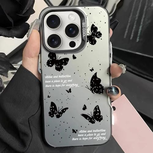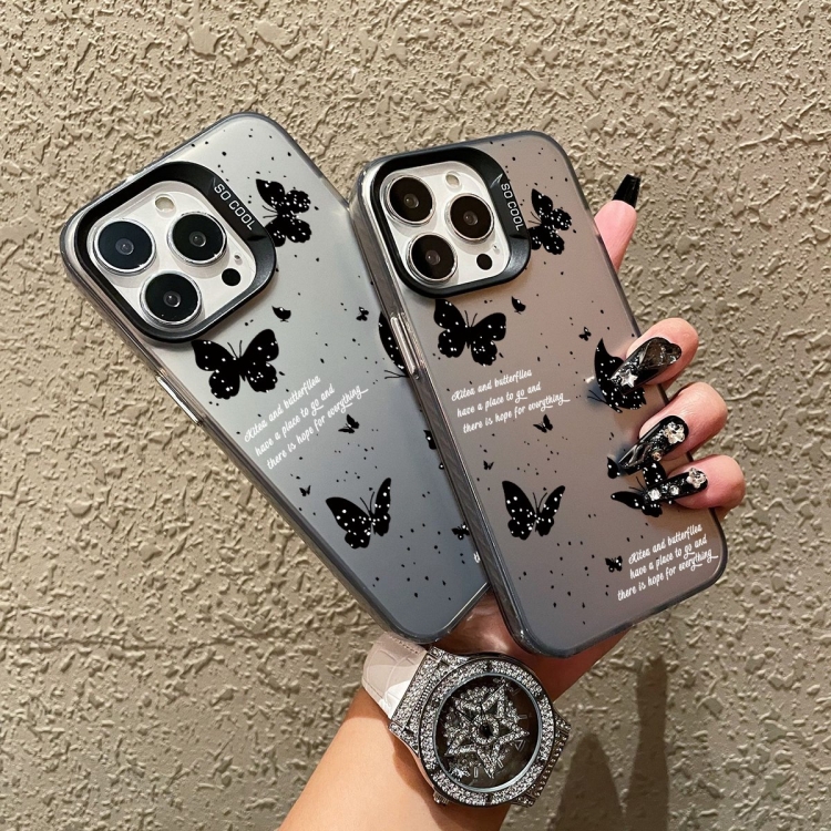 Caja de Teléfono Híbrida TPU para PC iPhone 14 Pro con Pintura Plateada (Mariposa de Tinta Blanca)