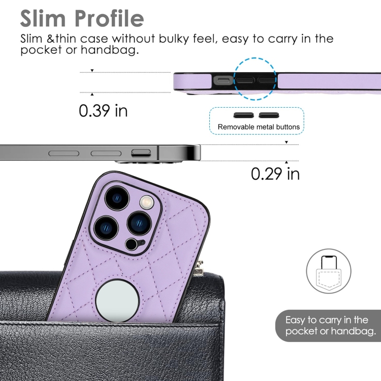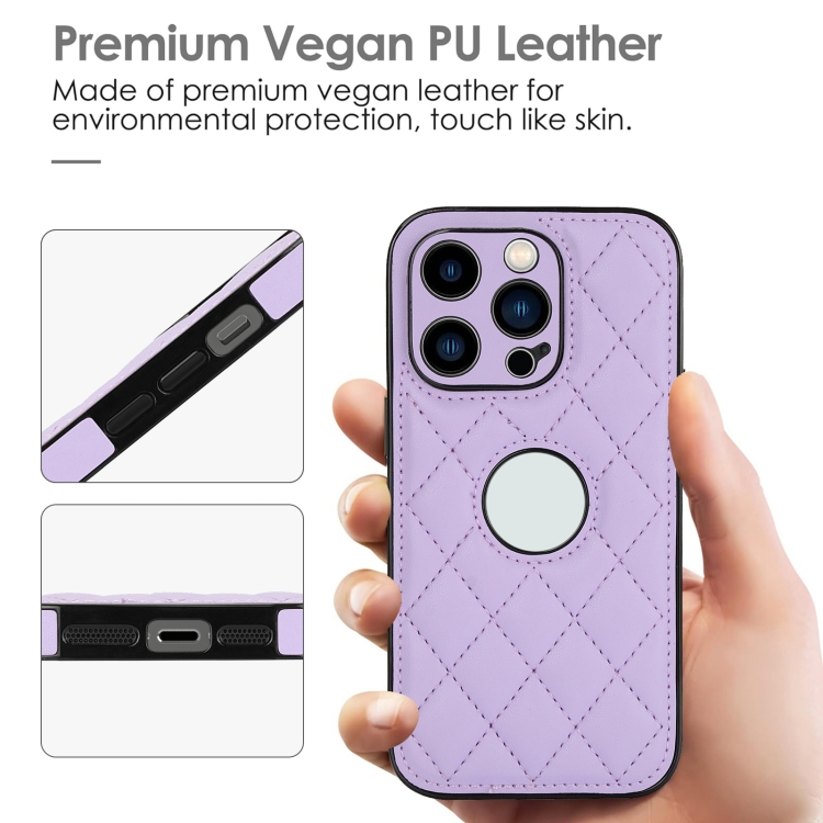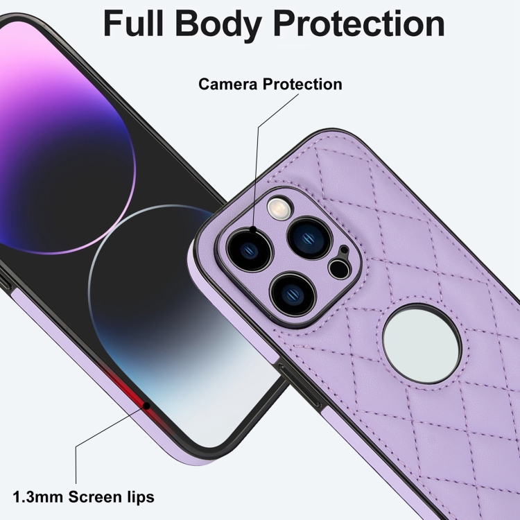 Funda para Teléfono iPhone 14 Pro Contraportada Cuero Rómbico (Púrpura)