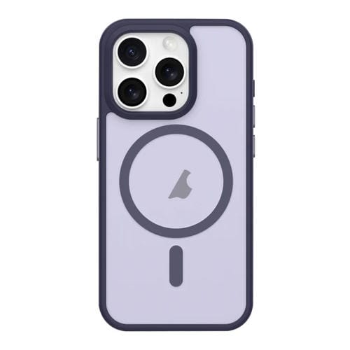 Estuche para teléfono iPhone 14 Pro Max Botón de metal Sensación de piel Magsafe Mate a prueba de golpes (Púrpura)
