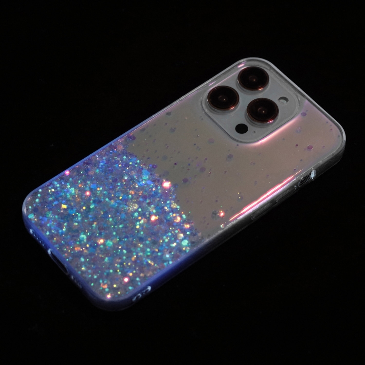 Funda para iPhone 14 Pro Max TPU con Polvo de Brillo Noctilucente y Marco Transparente (Azul)