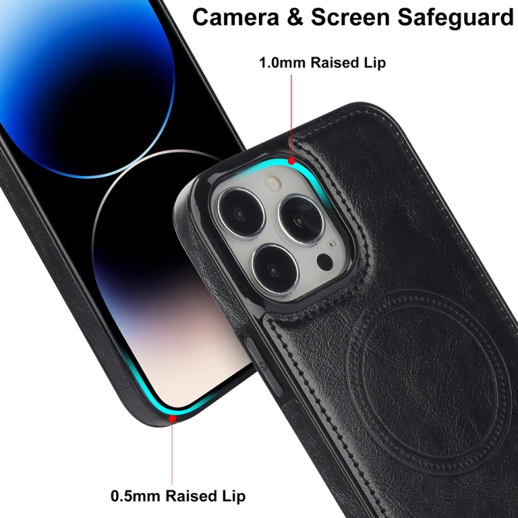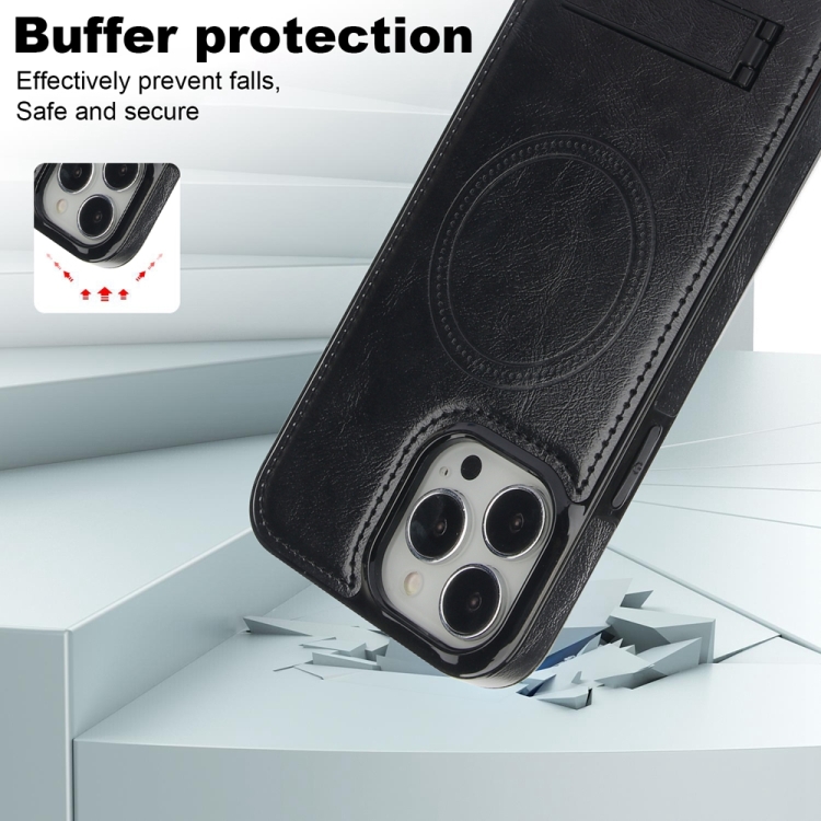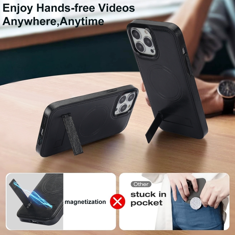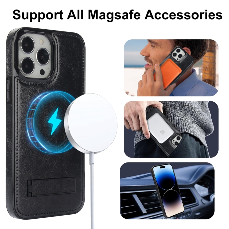 Funda de Teléfono Magsafe Apple iPhone 14 Pro Max Soporte Invisible Cuero Retro (Negro)